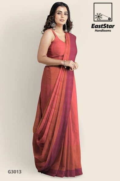 Orange Shade Glossy Cotton Saree G3008