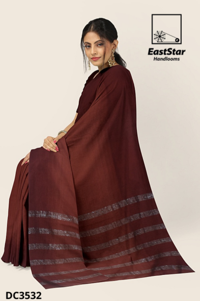 Navy Blue Rusty Brown Handloom Cotton Saree FC1547