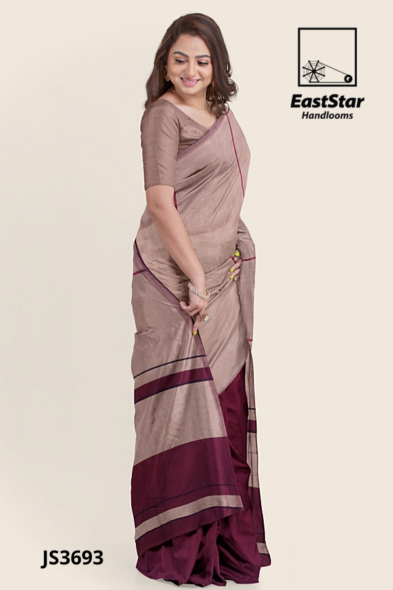 Pastel Yellow Taupe Handloom Cotton Saree DC3541