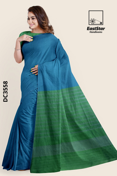 Blue Shade Glossy Cotton Saree G3009