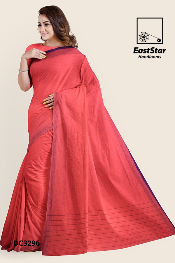Coral Red Handloom Cotton Saree DC3296