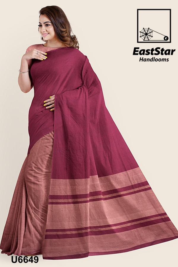 Maroon Light Brown Handloom Cotton Saree U6649