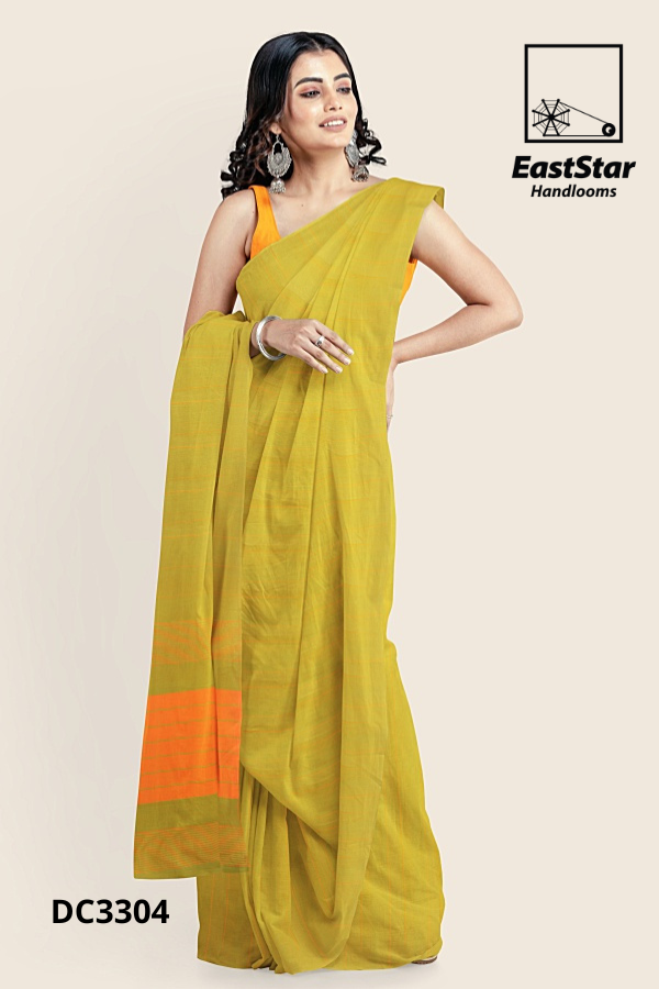 Greenish Orange Handloom Cotton Saree DC3304
