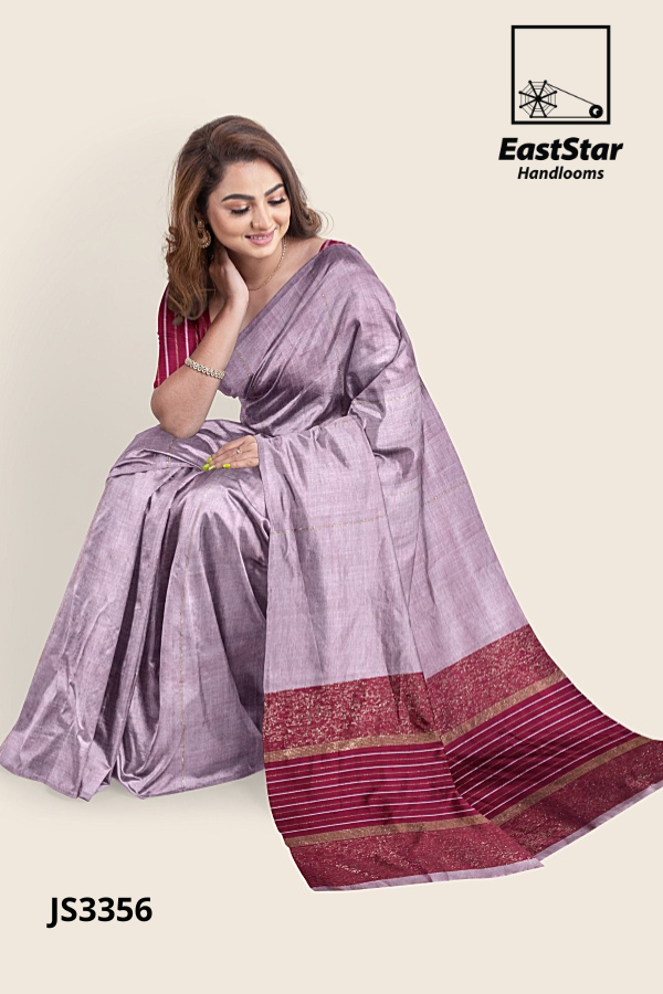 Pinkish Lavender Handloom Silk Saree JS3356