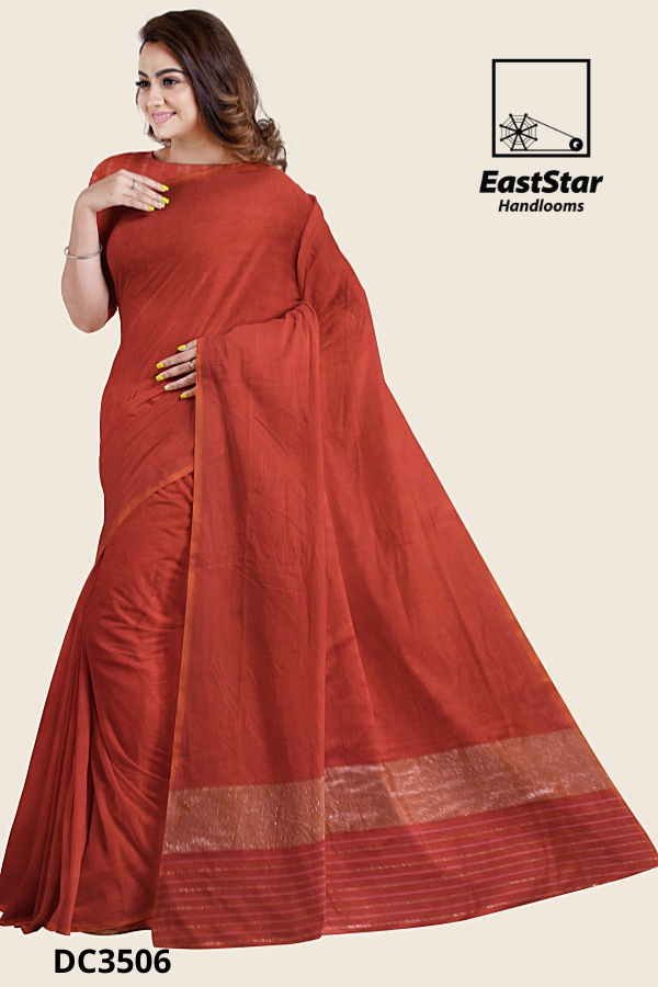 orange Handloom Cotton saree DC3506