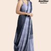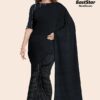 Step into elegance with our Black Gray Saree, paired with a chic sleeveless blouse. This stunning saree boasts a delicate pattern and striking black borders, making it perfect for any sophisticated occasion. Complemented by large, intricately designed silver earrings, this ensemble is a harmonious blend of traditional allure and modern style. Whether posing gracefully or making a grand entrance, this attire promises to make you the center of admiration. Elevate your wardrobe with this exquisite saree and feel the timeless grace envelop you. Order now to embody elegance and style!
