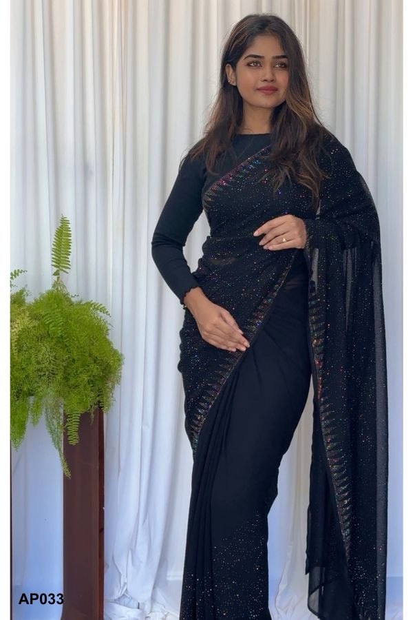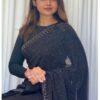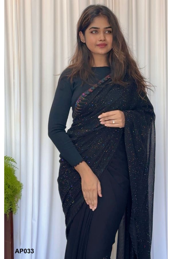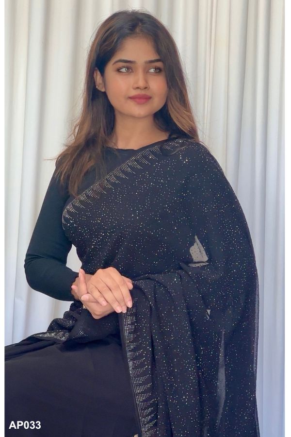 Immerse yourself in timeless elegance with our Sparkle Black Saree Collection. This stunning saree features a luxurious hint of sparkle woven into its fabric, transforming any occasion into a glamorous affair. Designed with a stylish long-sleeved black blouse, this ensemble is perfect for those seeking sophisticated flair. Whether you\’re attending a formal event or celebrating a special occasion, our elegant long-sleeve saree design promises to make a statement. Don\’t miss your chance to own this exquisite piece. Order your black sparkle saree online today and shine with unrivaled elegance.