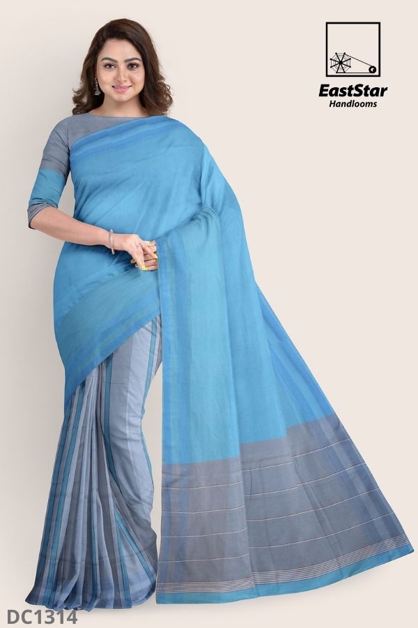 | Description | East Star presents this airy and lightweight Handlooms saree for those special occasions. This natural fabric settles around you as if they are part of your own skin. This Light Blue & Steel Grey Combination and woven for those who have a classy taste. |