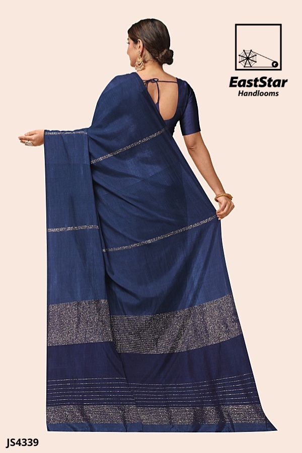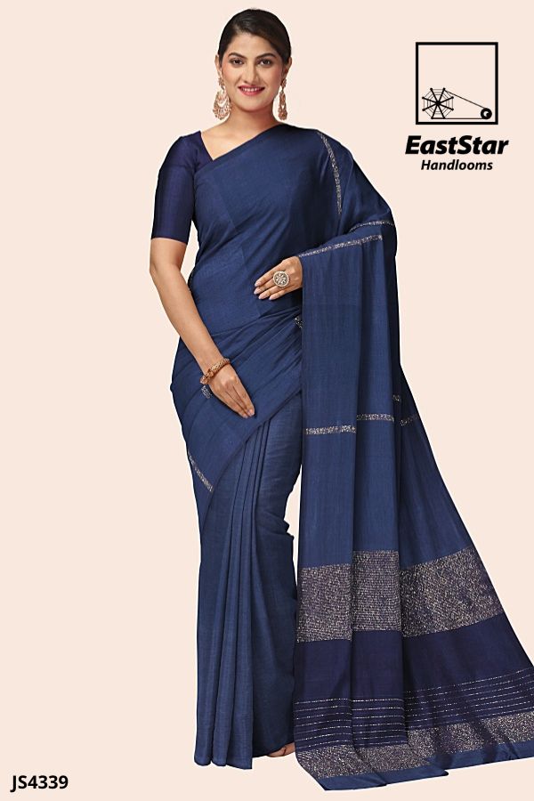- Feel exceptionally elegant in our beautifully detailed deep blue saree.