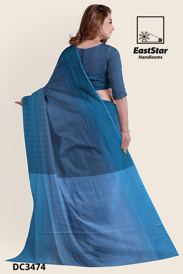 Elevate your wardrobe with the Blue Ombre Handloom Saree from EastStar Handlooms, DC3474. This navy to light blue sari moves from inky teal and navy into a luminous pastel hue, finished with a refined pinstriped pallu that adds modern rhythm to timeless drape. Soft, breathable handloom texture, graceful fall, and versatile styling make this blue ombre saree with pinstripes perfect for celebrations, soirées, and standout everyday elegance. Buy blue ombre handloom saree from EastStar Handlooms today and feel the artistry; Order the navy teal gradient sari now to experience the glow of an ombre blue saree EastStar Handlooms DC3474, your teal navy gradient blue saree for every occasion.