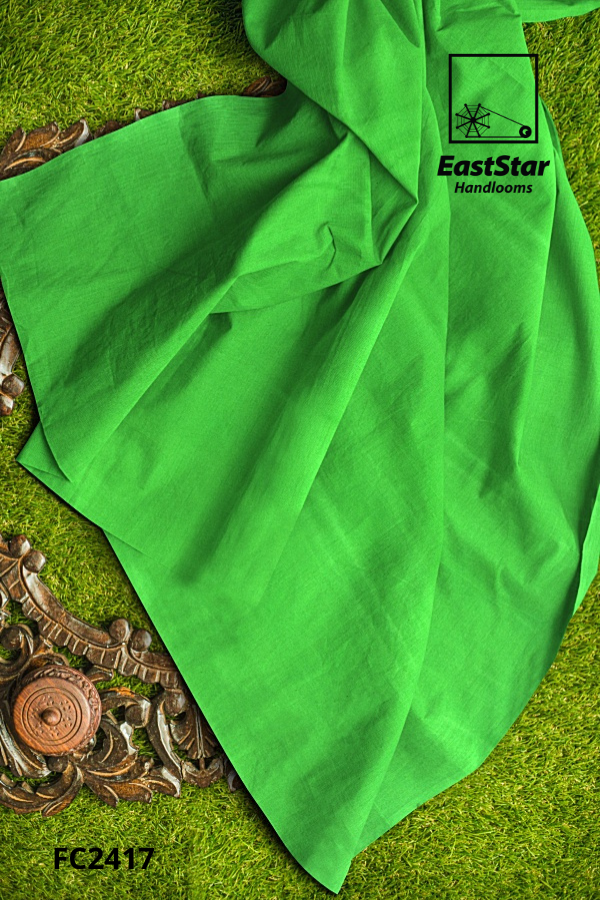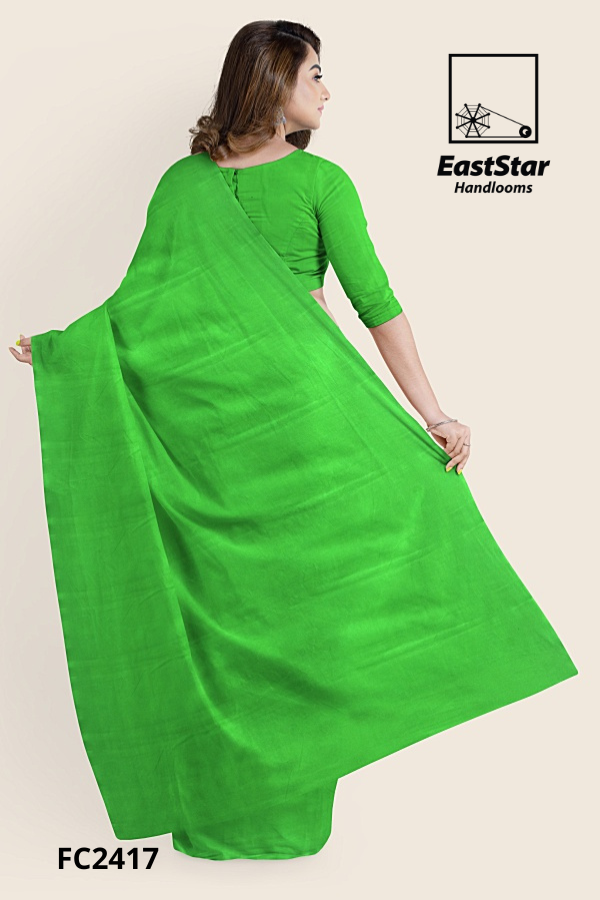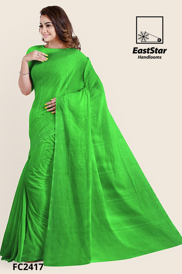 Glow with effortless elegance in this EastStar Handlooms bright green plain saree—a handloom bright green plain saree with a solid green saree simple design, crafted for modern minimalists. The simple solid saree from EastStar Handlooms features graceful front pleats and a long pallu that drapes beautifully from shoulder to floor, delivering a polished, timeless profile. Its green solid plain saree silhouette embodies bright green saree minimal style—a simple plain green saree that pairs seamlessly with statement earrings or everyday essentials. Buy bright green plain saree and Buy solid green plain saree with confidence—Order handloom bright green saree from EastStar Handlooms today and elevate every occasion.