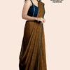 Discover elegance with our stunning Brown Saree featuring a striking Teal Border, designed to captivate at any event. Draped exquisitely with graceful pleats, this saree effortlessly blends traditional charm with a modern twist. The complementary darker sleeveless blouse enhances your silhouette while large silver earrings and a bangle provide a stylish finish. Perfect for festive occasions or sophisticated gatherings, this ensemble promises timeless beauty and sophistication. Elevate your wardrobe by ordering this Elegant Brown Saree Collection online today and step into a world of unmatched elegance and style.