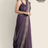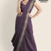 Discover timeless elegance with our Brown Sari with Golden Border. This traditional Indian sari, adorned with a subtle, textured pattern and a luxurious golden border, perfectly captures the essence of heritage wear. The matching sleeveless blouse adds a modern touch, creating a harmonious blend of tradition and style. Paired with intricate silver accessories, including large earrings and a delicate bangle, this outfit is perfect for making a statement at any cultural event. Buy your Traditional Purple Sari with Sleeveless Blouse online today and embrace authentic Indian fashion.