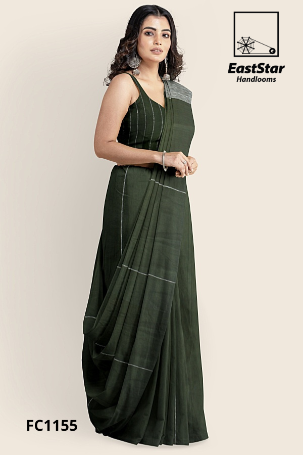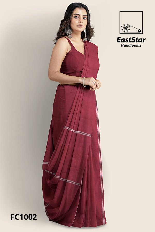 Meet FC1026 from EastStar Handlooms, a brown handloom saree with pinstripes in deep charcoal that glides in a lightweight matte drape, accented by fine light-gray lines across the body and a striking pallu. Handloom-crafted for breathable comfort and elegant structure, it pleats neatly, moves beautifully, and pairs effortlessly for work, weddings, or evenings. Searching for a lightweight matte handloom saree or a charcoal striped handloom saree? This EastStar Handlooms classic delivers quiet luxury with timeless versatility. Buy the brown handloom pinstripe saree FC1026 now and elevate your collection; order this lightweight matte brown handloom saree today.