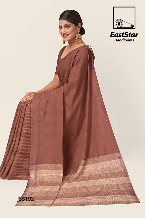 Embrace the timeless elegance of tradition with the EastStar JS3192 Sari, a masterpiece of handwoven artistry. This stunning traditional brown sari showcases a sophisticated striped design, enhanced by a wide beige border that exudes sophistication. Perfect for any occasion, its subtle sheen and intricate detailing reflect the prowess of EastStar Handlooms. Paired beautifully with your favorite jewelry, this sari is more than just attire—it\’s a statement. Purchase this elegant traditional brown sari online today and adorn yourself with the legacy of unparalleled craftsmanship.
