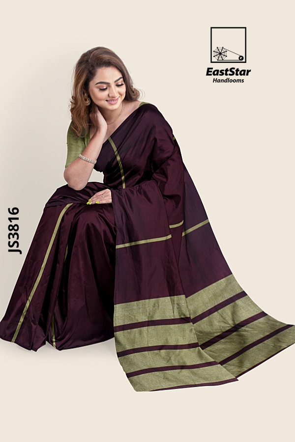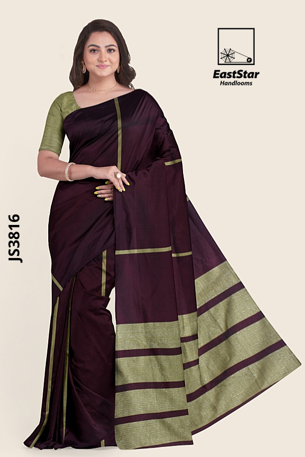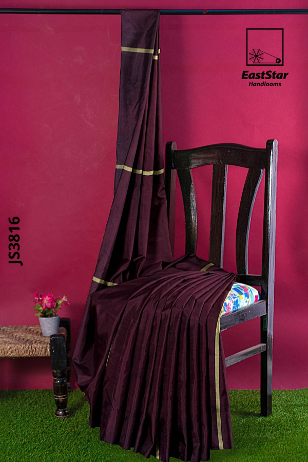 Radiate quiet luxury in the Burgundy silk saree JS3816, a richly hued burgundy plum silk saree with a luminous, burgundy silk saree stone border that frames every move. Crafted in a fluid, silk-like finish, this striped border plum saree showcases a wide stone pallu with subtle texture, multiple horizontal plum stripes, and silk plum saree geometric accents that create clean lines and graceful drape. Styled with the matching stone blouse, this plum sari with stone stripes – also known as stone border plum saree JS3816 – delivers effortless poise from ceremonies to soirees; Buy plum saree stone blouse for a complete, ready-to-wear ensemble. Buy stone border silk saree today and Order burgundy plum silk saree now to claim Plum saree stone stripes JS3816 as your signature statement.