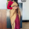 Step into timeless elegance with our exquisite golden-beige saree draped gracefully over a classic maroon petticoat adorned with white stripes. Paired with a sophisticated long-sleeved maroon blouse, this ensemble captures the essence of traditional beauty with a contemporary twist. Perfect for special occasions, this saree enhances your natural grace and poise, making you the center of attention. Embrace the allure of tradition—order your golden-beige saree with maroon accents online today!