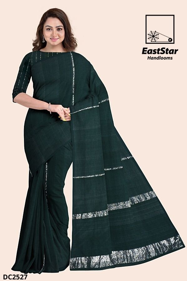 Be the first to review “Dark Green Handloom Cotton Saree DC2527”