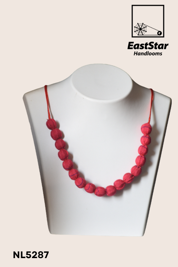 Want to give yourself an elegant look to this Session? Then Choose this unique and special neck piece from East Star Handlooms. This is a modern collection of Handloom fabric with Cotton Fabric design pendant and unique style earrings has been used to give a modern & elegant look. It’s crafted and finished beautifully by our expert Rural Women. This can be used with any kind of dresses especially with Handloom sarees!