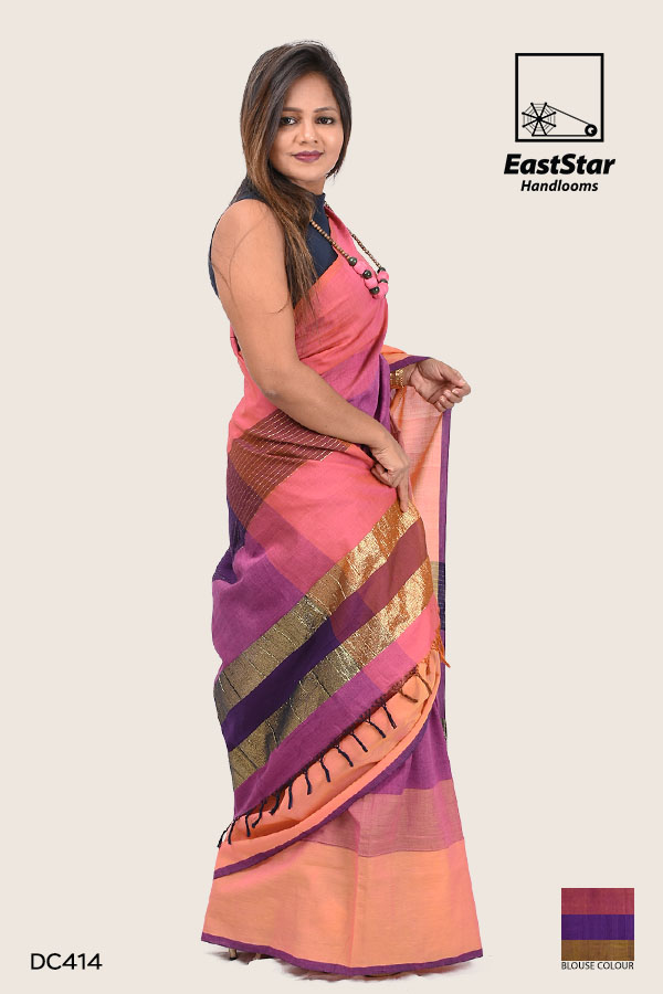 This saree comes with matching Violet shade piece .The blouse in this picture is for photo purpose only & Blouse color is mention on right bottom in this picture