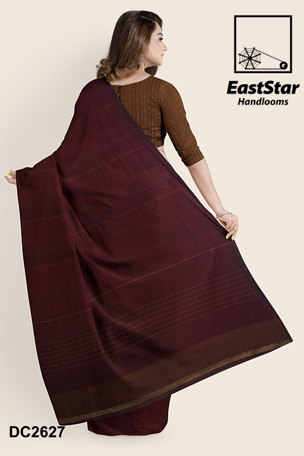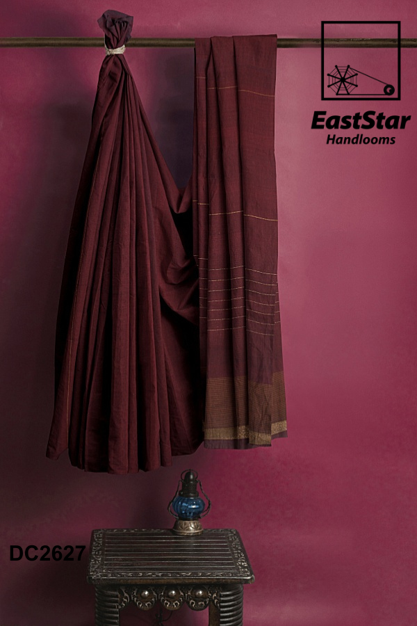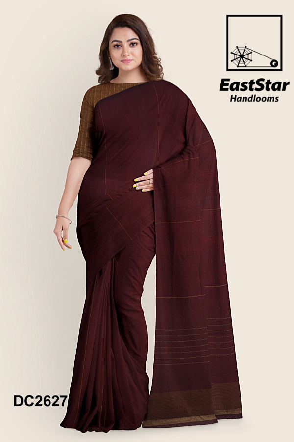 Step into timeless elegance with the EastStar Handlooms maroon saree, an embodiment of grace and tradition. This exquisite saree flaunts subtle linear patterns, lending a sophisticated touch to its rich maroon hue. Complemented by a beautifully contrasting brown blouse, this ensemble speaks volumes of style and cultural poise. Perfect for any occasion that demands a traditional yet elegant statement, it\’s an ideal choice for those who cherish craftsmanship and refined aesthetics. Discover the allure of traditional elegance and shop this exquisite saree online, a masterpiece from EastStar Handlooms.