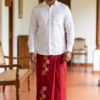 Meet the Men\’s deep red SAPTA Sarong EMSA2011, an elevated essential that brings refined ease to every step. This ankle length SAPTA Sarong for men showcases a bold vertical decorative rings motif—three concentric ring sets connected by clean white lines—for a modern, distinguished silhouette. From ceremonies to coastal getaways, this men\’s deep red long sarong adds confident simplicity and a polished, camera-ready finish. Buy men\’s deep red sarong today: order decorative ring motif sarong, secure your red sarong with vertical motif, and buy ankle length men\’s sarong—the decorative rings motif SAPTA Sarong, the decorative rings pattern men\’s sarong that stands out.