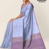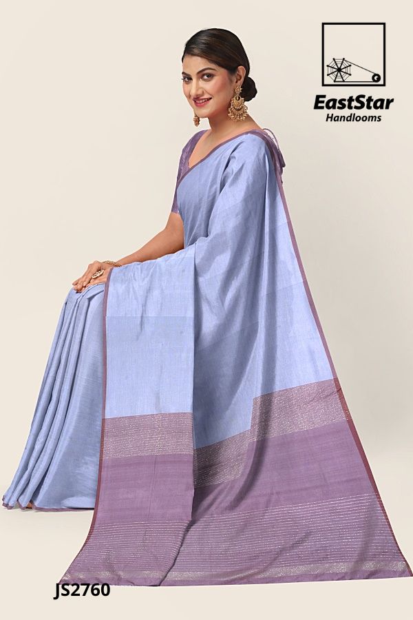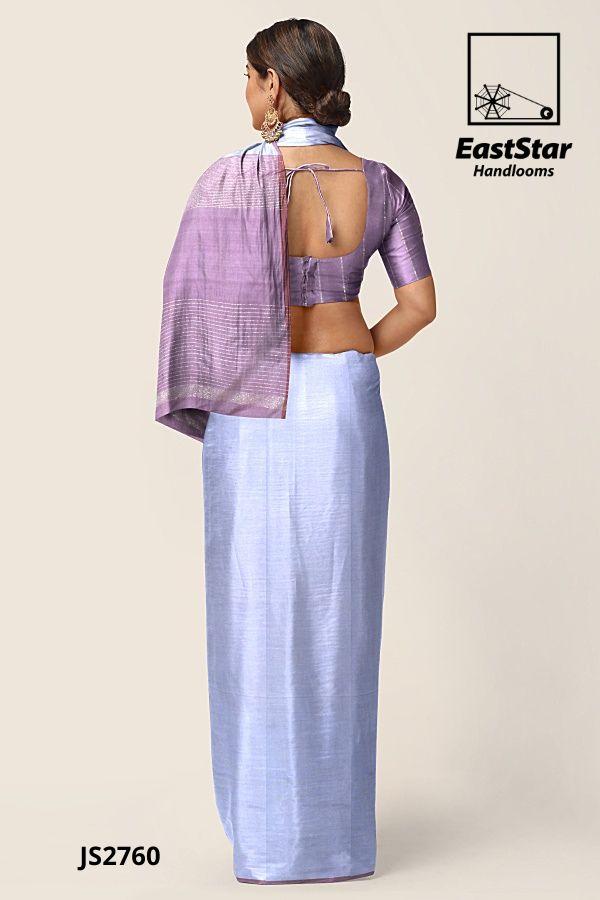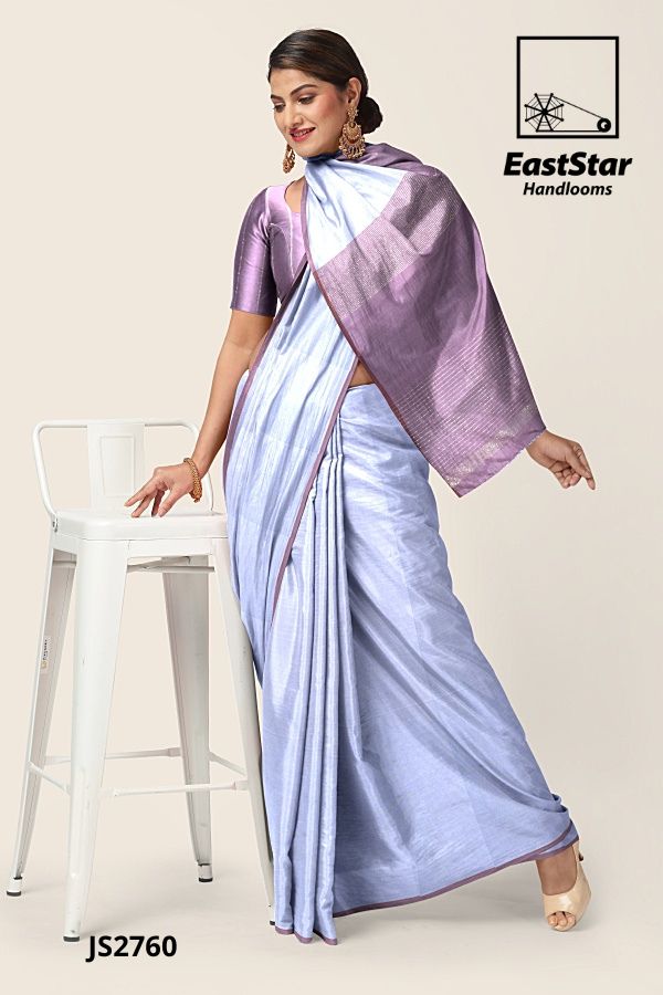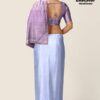Elevate your special occasion wardrobe with our Elegant Traditional Dusty Lavender Sari, featuring a luxurious sheen and a stunning light blue hue. The exquisite sari set includes a matching short-sleeved blouse in a harmonious shade of dark blue and purple. Accentuate your look with ornate gold earrings and a matching bracelet, perfectly complementing the sari\’s elegance. Ideal for those who cherish tradition with a touch of luxury, this ensemble is a must-have. Buy this elegant traditional blue sari and accessories set now and make a statement.