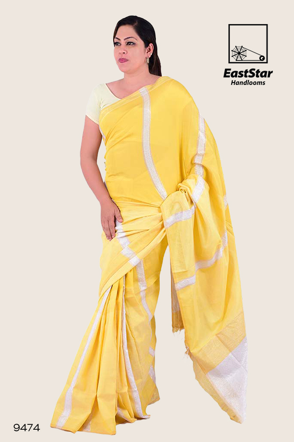 Bring out the fashionista in you by wearing this extravagant designer Handloom silk saree. The shiny silk fabric and the Yellow makes it an instant hit at any party. Notice the lovely colors on the full body of the saree, that seems to make it Rich look of the saree. It even comes with a blouse piece in Yellow Dust to complete your look.