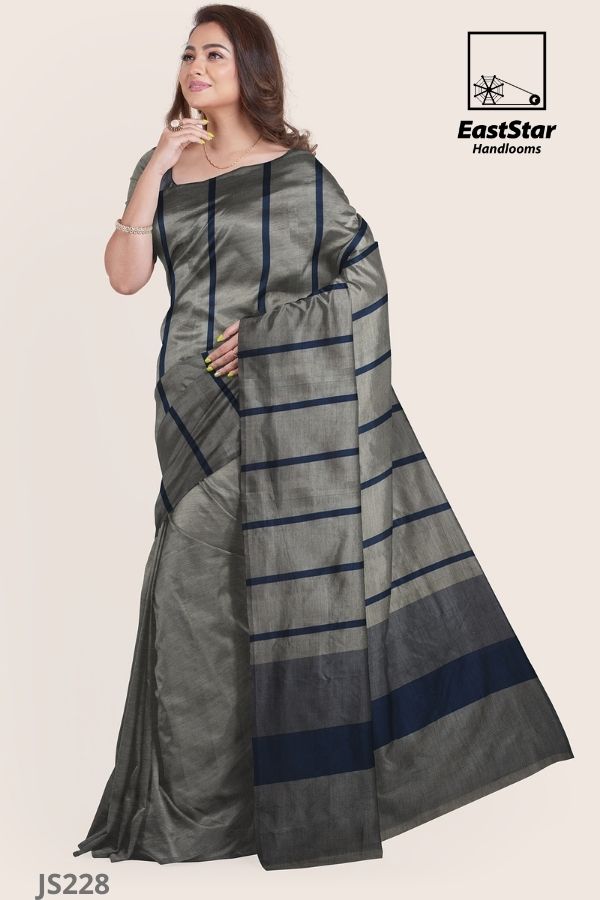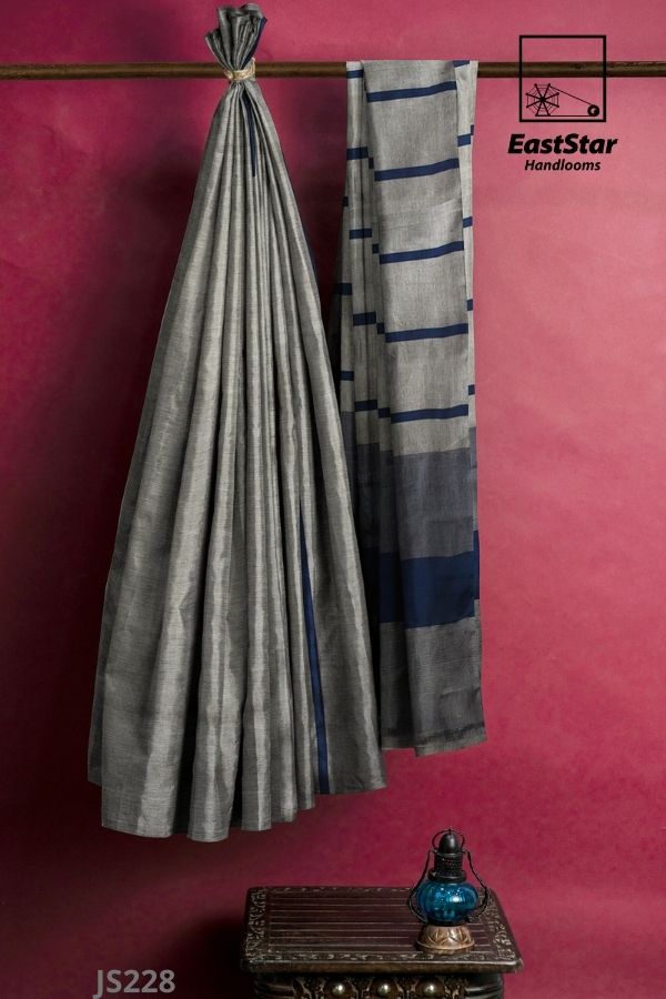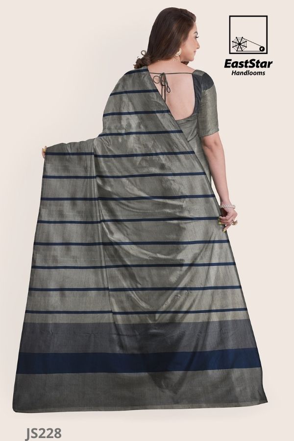 Featuring this handloom silk cotton saree in Grey & Navy Blue. The fabric is Comfortable, soft in texture, and gives a great fall. The body is adorned with Grey & Navy Blue stripes and Lovely Pallu, making it an ideal drape for special occasions. |