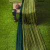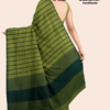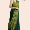 Step into a world of timeless elegance with our Green Sari by FashionBrand, featuring a stunning sleeveless blouse. This dark green sari effortlessly blends traditional charm with modern sophistication. The exquisite grid pattern, with its darker and lighter green stripes, adds a chic touch to your wardrobe. The elegantly draped pallu completes the look with grace. Accessorized with large silver earrings and a bangle, this sari is perfect for any occasion. Unlock the allure of this modern masterpiece and make it yours today. Shop now for this captivating dark green striped sari online and embrace a style that speaks of elegance and contemporary flair.