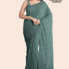 Embrace elegance with our stunning green saree, graced with exquisite silver embellishments along the border and pallu. This elegant draped saree outfit, paired with a chic sleeveless blouse, epitomizes timeless style and sophistication. Accentuated by large ornate silver earrings and a simple bangle, this ensemble is designed for the modern woman who appreciates classic beauty. Perfect for any occasion, this saree enhances your grace with every drape. Don\’t wait to make it yours—buy this elegant green saree online now and transform your wardrobe with unmatched elegance.