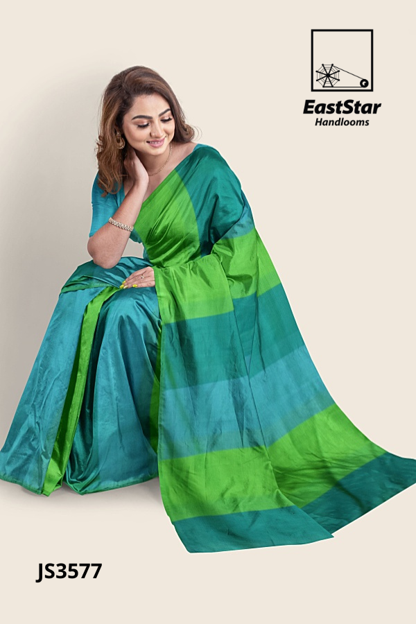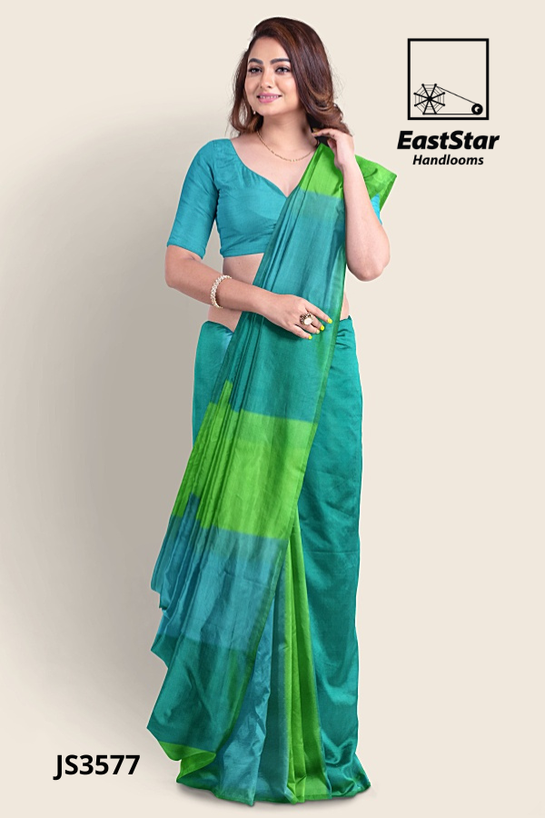 Step into luminous style with the Two-tone teal lime sari EastStar Handlooms JS3577—an artisan handloom weave pairing a rich teal body with lime-green pleats, a refined lime border, and a bold teal–lime pallu in broad bands. Elegant and effortlessly draped, this teal lime handloom saree moves from festivities to work with ease while highlighting your jewelry and confident poise. If you seek a two-tone handloom teal saree with a lime border and a statement teal lime green pallu saree, this handloom teal lime border saree stands out among two-tone teal lime green sarees. Buy teal lime handloom saree now—Order two-tone teal lime saree JS3577 from EastStar Handlooms and shine in every step; buy teal lime green saree today.