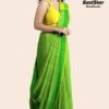 Step into a world of elegance with our Vibrant Green Saree paired effortlessly with a Stylish Yellow Blouse. Part of the exclusive Vibrant Saree Collection 2025, this ensemble combines contemporary design with traditional charm, making you the center of attention. The saree features a striking bright green pallu adorned with chic yellow and green stripes, while large silver earrings and bracelets add a touch of sophistication. Perfectly suited for any occasion, this graceful attire ensures you stand out with luxury and style. Don\’t miss your chance to order this stunning green saree online and complete the look with our designer silver accessories. Redefine your wardrobe today with this elegant masterpiece.