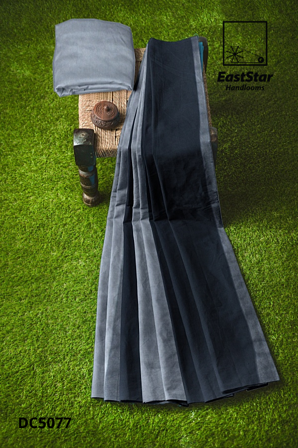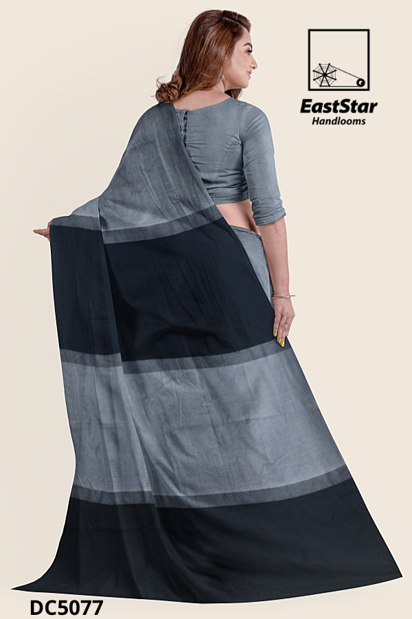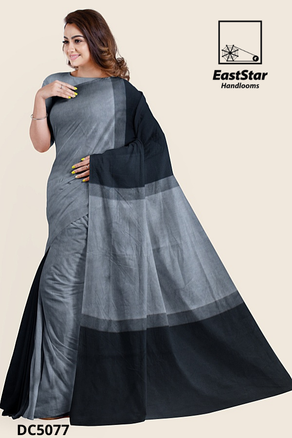 Discover DC5077, a Grey black ombre saree EastStar Handlooms creation crafted in authentic handloom finesse. From misty silver to inky charcoal, the gradient pallu deepens into black panels while the body moves from medium grey to a sleek black hem, styled with a matching-grey blouse for a polished, modern silhouette. This cool grey black handloom saree is a seasonless statement for celebrations, soirées, and power dressing—your elegant answer to a grey black ombre saree, a charcoal and grey gradient saree, and a grey to black ombre saree. Buy grey black ombre saree and Order charcoal gradient handloom saree DC5077 today—the Handloom gradient grey saree EastStar Handlooms to elevate every occasion; Buy grey to black saree now.