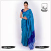 This Deep Sky Blue & Dark Blue saree is crafted in cotton. Light weight, Trendy and eye catching Handloom saree comes with matching fabric Blue & Gold Stripes Blouse piece. The blouse in this picture is for photo purpose only.
