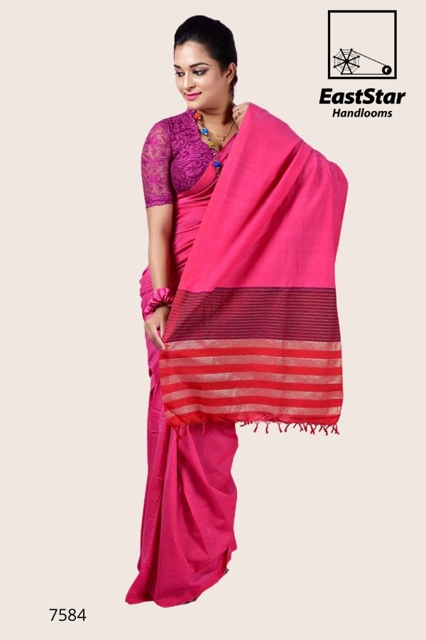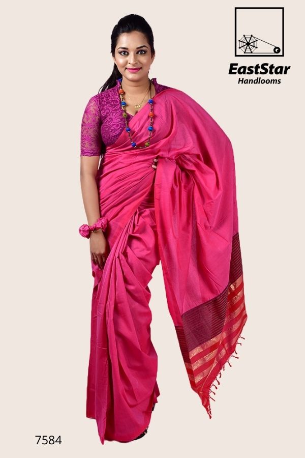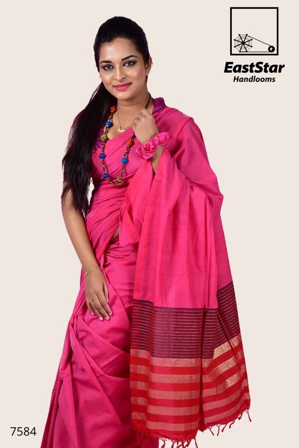 This saree comes with matching fabric Magenta Blouse Piece. The blouse in this picture is for photo purpose only & Blouse color is mention right bottom in the Picture.