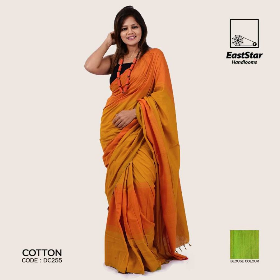 This Orange & Mustard saree is crafted in cotton. Light weight, Trendy and eye catching Handloom saree comes with matching fabric Green Blouse piece. The blouse in this picture is for photo purpose only.