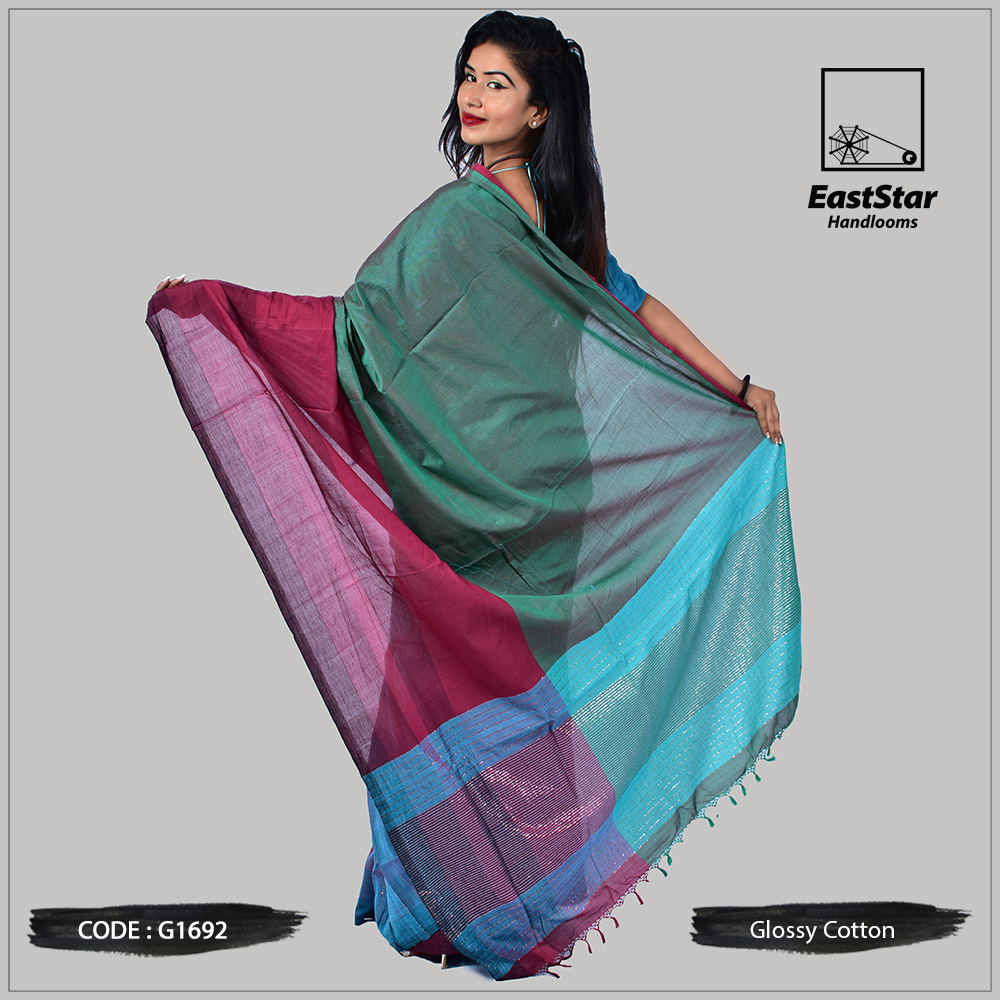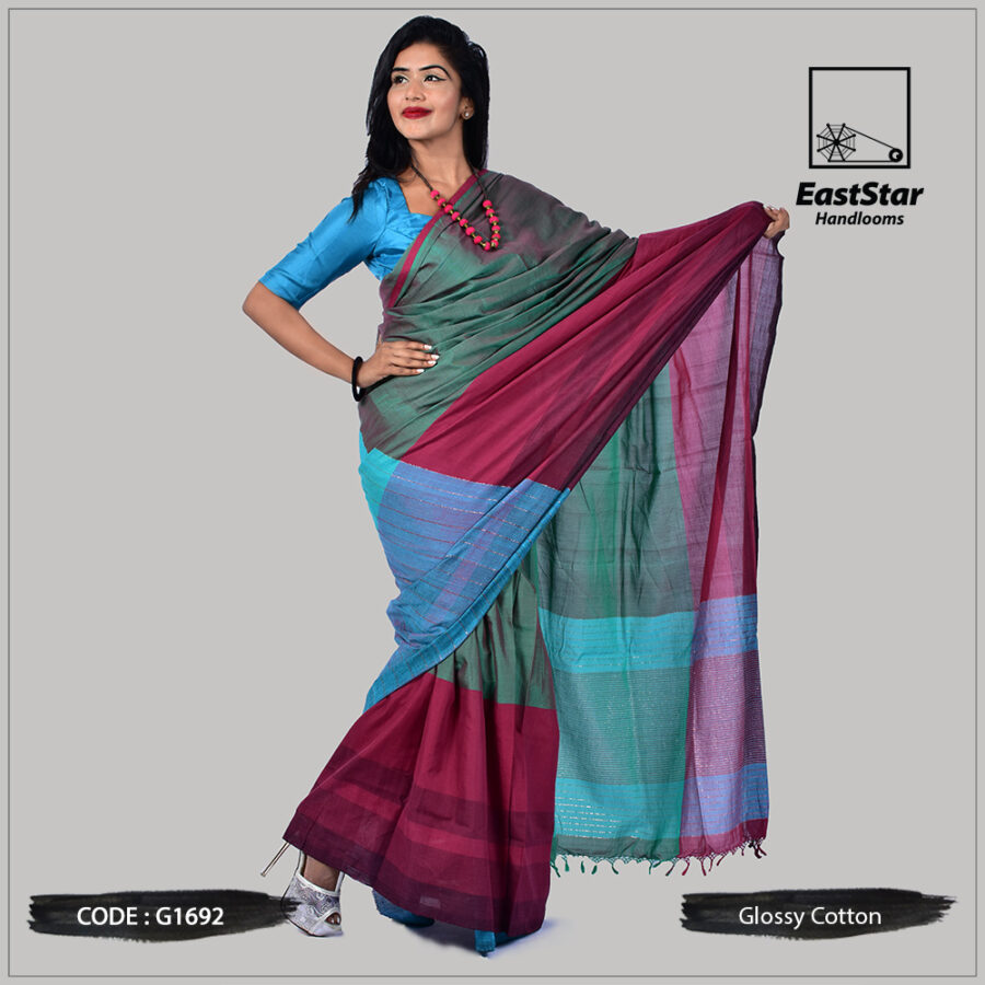 This saree comes with matching fabric Sea Green blouse piece .The blouse in this picture is for photo purpose only.