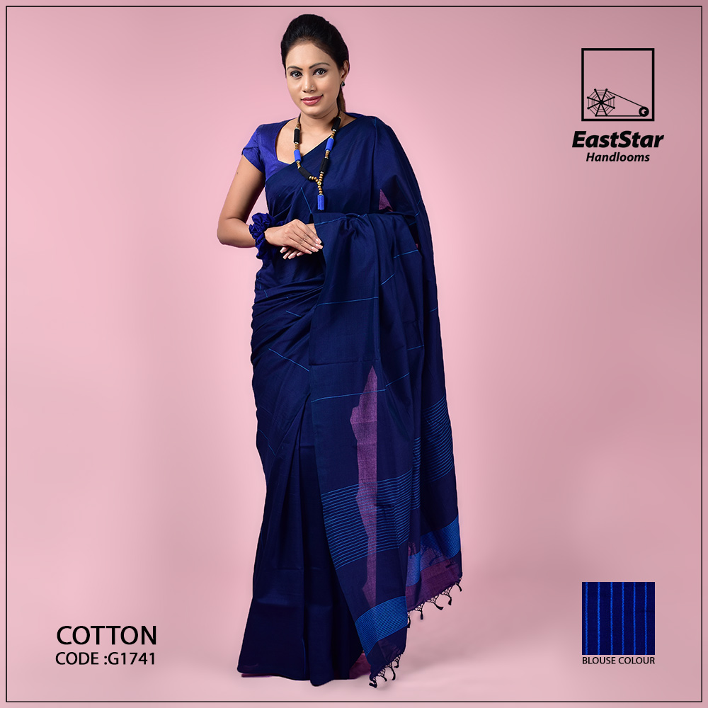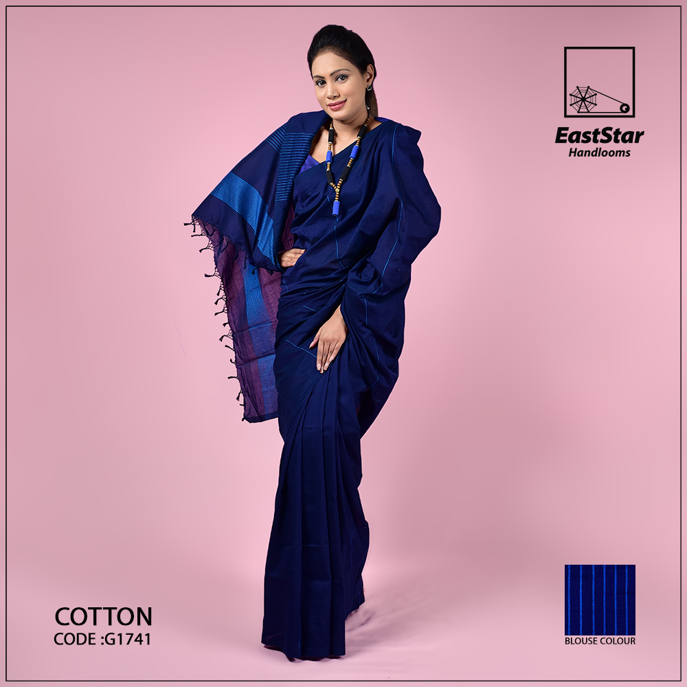 This saree comes with matching fabric Navy Blue blouse piece .The blouse in this picture is for photo purpose only & Blouse color is mention on right bottom in this picture