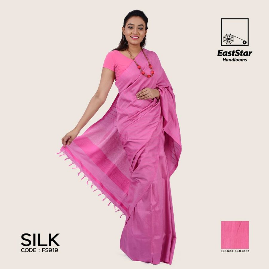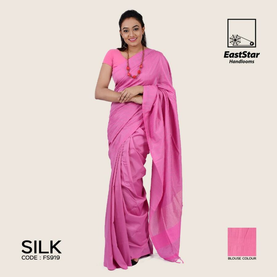 Bring out the fashionista in you by wearing this extravagant designer Handloom silk saree. The shiny silk fabric and the Rose makes it an instant hit at any party. Notice the lovely colors on the full body of the saree, that seems to make it Rich look of the saree. It even comes with a blouse piece in Rose to complete your look.