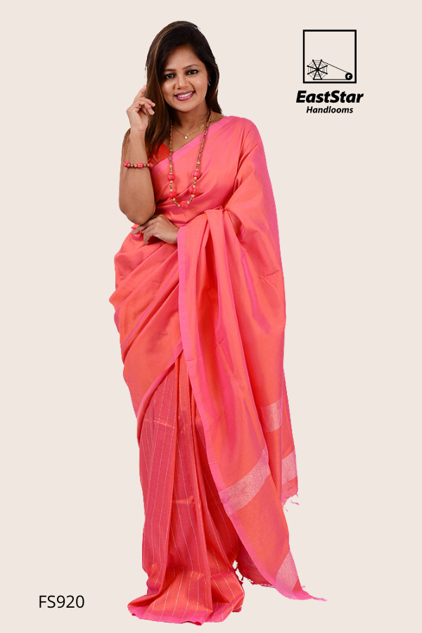 This saree comes with matching fabric Peach Blouse Piece. The blouse in this picture is for photo purpose only