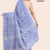Elevate your elegance with our exquisite light blue saree, featuring subtle white stripes cascading through the graceful pallu. Crafted with a plain yet luxurious texture, this saree effortlessly blends style and sophistication, making it a timeless addition to your wardrobe. Complementing the serene charm of the saree is a matching sleeveless blouse that exudes modern grace. Paired with intricate earrings and a delicate bangle, this ensemble is perfect for those who wish to embrace an aura of understated luxury. Ideal for both festive celebrations and casual gatherings, this elegant blue stripe saree promises to be the defining piece for any occasion. Discover the epitome of timeless fashion and order your stylish blue pallu saree online today!