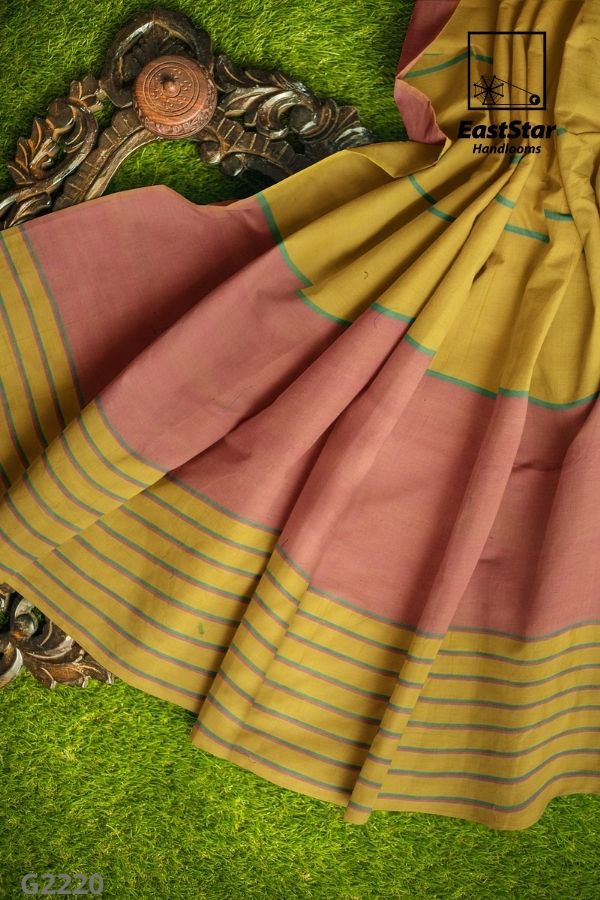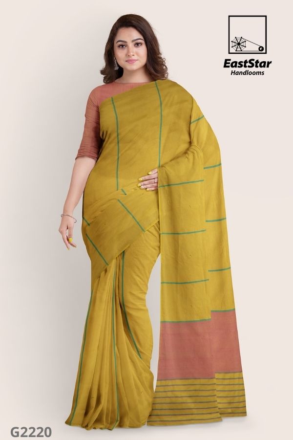 Mustard Handlooms Glossy Cotton Saree G2220