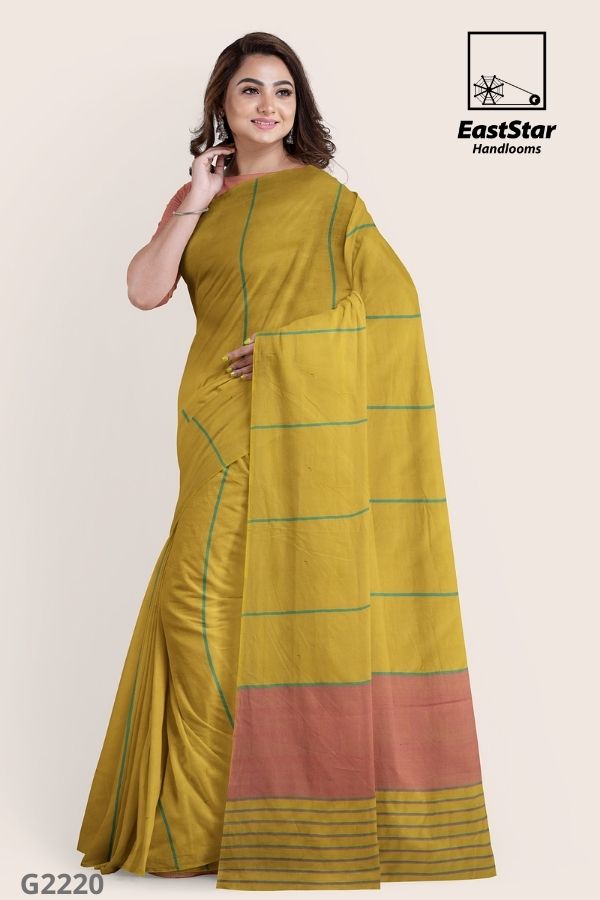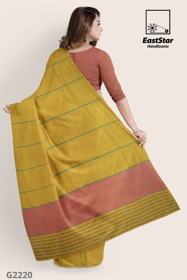 Description East Star presents this airy and lightweight Handlooms saree for those special occasions. This natural fabric settles around you as if they are part of your own skin. This Light Mustard & Orange Combination and woven for those who have a classy taste.