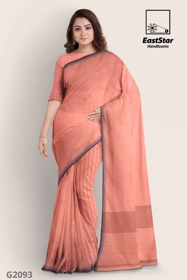 Description East Star presents this airy and lightweight Handlooms saree for those special occasions. This natural fabric settles around you as if they are part of your own skin. This Light Orange Combination and woven for those who have a classy taste.