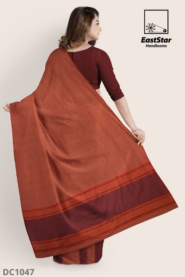 | Description | East Star presents this airy and lightweight Handlooms saree for those special occasions. This natural fabric settles around you as if they are part of your own skin. This Orange & Mahogany Combination and woven for those who have a classy taste. |
