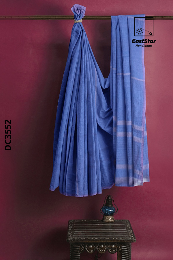 Fabric Pure Cotton Length and Width 6.15 Meters, 1.19 meters Blouse Piece 1 meter in Lightweight blue Weave style Handwoven Description East Star presents this airy and lightweight Handlooms saree for those special occasions. This natural fabric settles around you as if they are part of your own skin