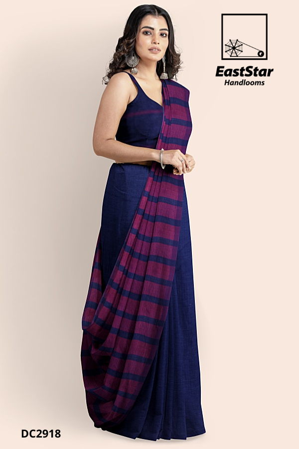 Blue Green Handloom Cotton Saree DC3161
