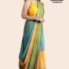 Step into timeless elegance with our Vibrant Saree Collection. This multi-colored traditional saree, featuring shades of green, blue, and mustard yellow, is crafted from a light, flowy fabric that drapes gracefully. Paired with a sleeveless bright yellow blouse, this ensemble radiates sophistication and charm. Complete your look with our ornate silver earrings and bracelet, adding a touch of tradition. Perfect for any occasion, embrace the beauty of traditional saree styles today. Enhance your wardrobe with this elegant saree and shop now!