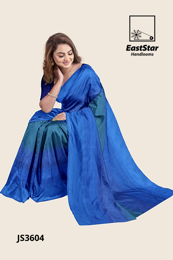 Meet the Blue saree EastStar Handlooms JS3604 – a luminous Blue silk blend saree EastStar Handlooms designed to move like liquid light. Royal blue deepens into teal and indigo, creating a teal indigo gradient blue saree with a refined, shiny finish and a pallu that frames every step in effortless grace. Style it with a deep-blue blouse and minimal accents for a royal blue handloom silk saree look that elevates ceremonies and soirees alike, channeling the craftsmanship of EastStar Handlooms in a modern teal blue handloom saree aesthetic. Buy blue silk blend saree, order royal blue handloom saree, or buy teal indigo gradient saree today – your go-to blue shiny finish saree and blue silk blend drape saree from EastStar Handlooms.